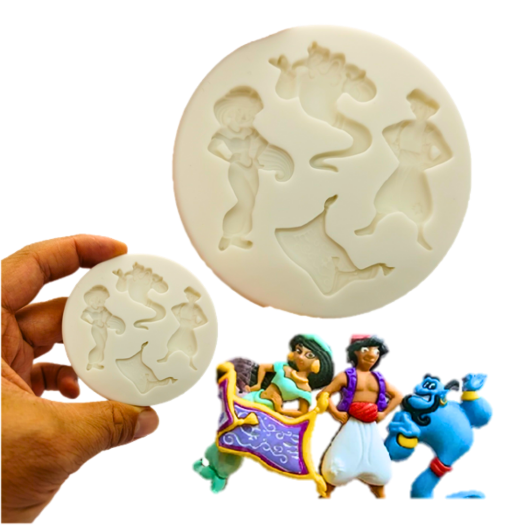 Este molde de silicona es ideal para crear decoraciones divertidas y encantadoras con los personajes más mágicos de todos. Perfecto para reposterÃa, manualidades y cualquier proyecto creativo, este molde te permitirá crear figuras detalladas de personajes como Aladino, Jasmine, el Genio y el tapiz volador.