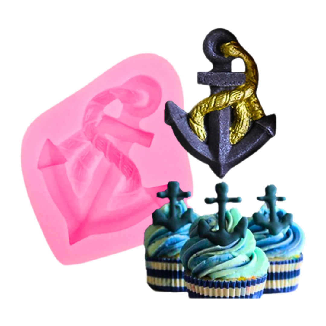 Molde con forma de ancla con soga, ideal para crear decoraciones temáticas para cupcakes, pasteles, chocolates, jabones y más. Perfecto para fiestas marinas, cumpleaños y eventos náuticos.