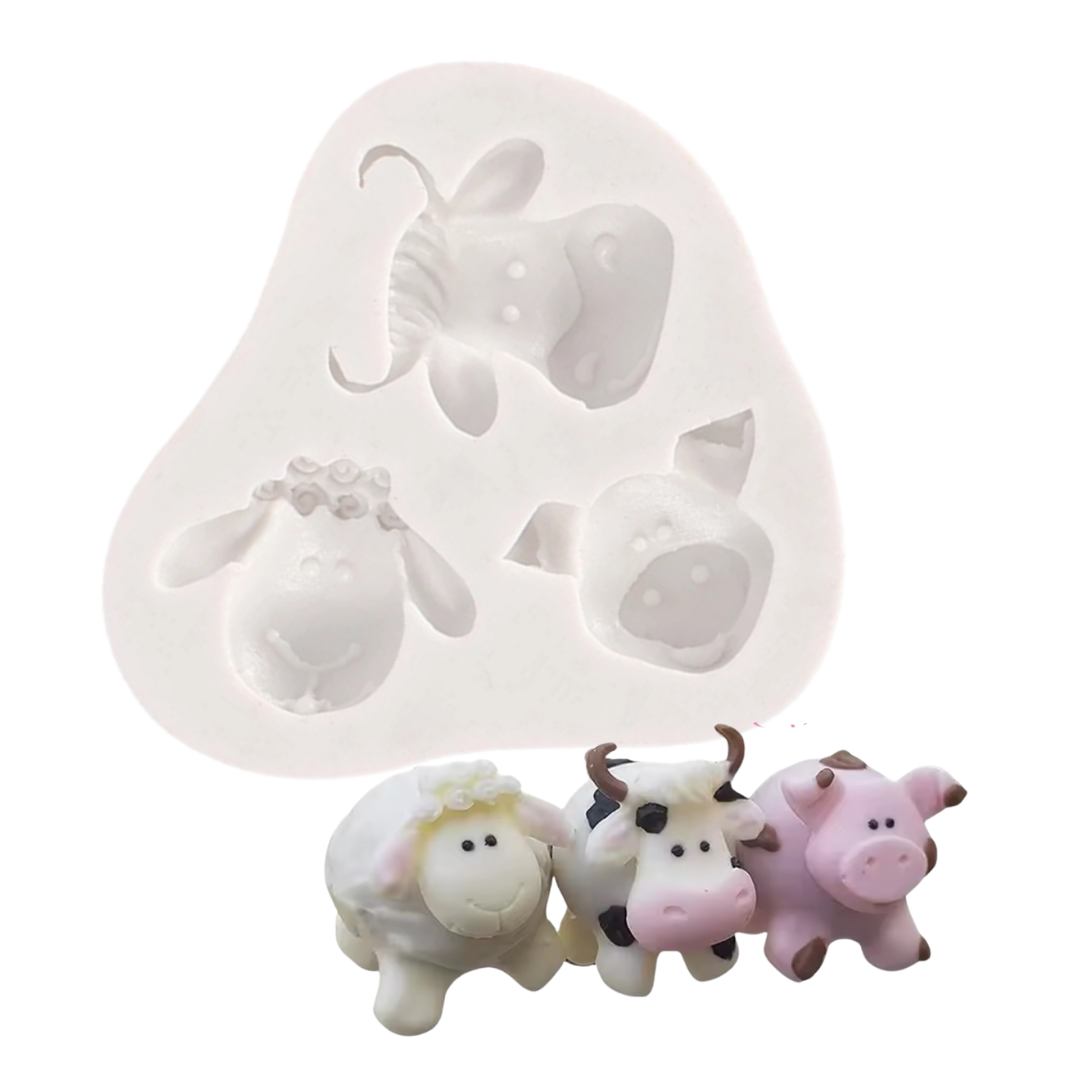 Crea figuras de vaca, cerdito y oveja con detalles encantadores. Ideal para pasteles infantiles, baby showers, fiestas temáticas y más.