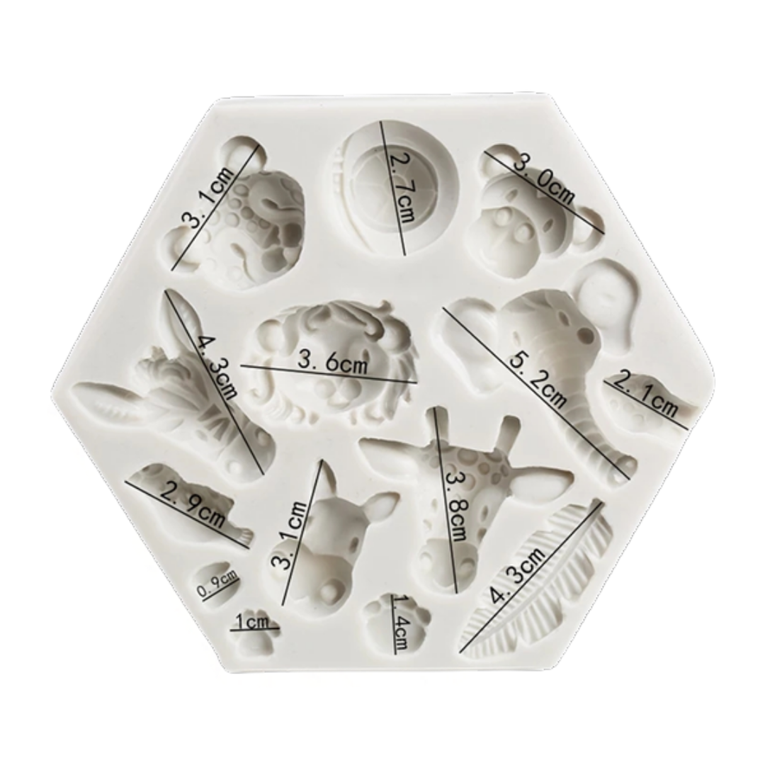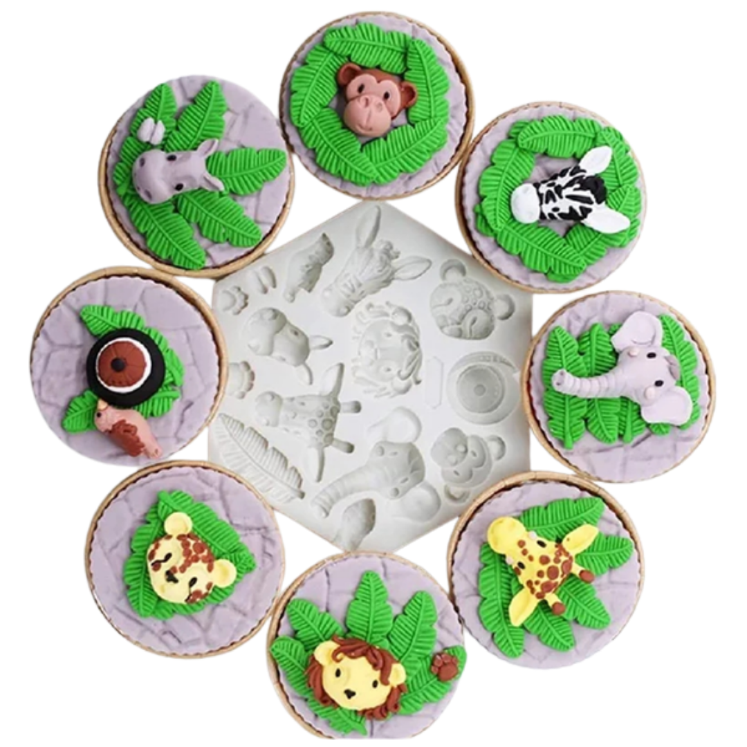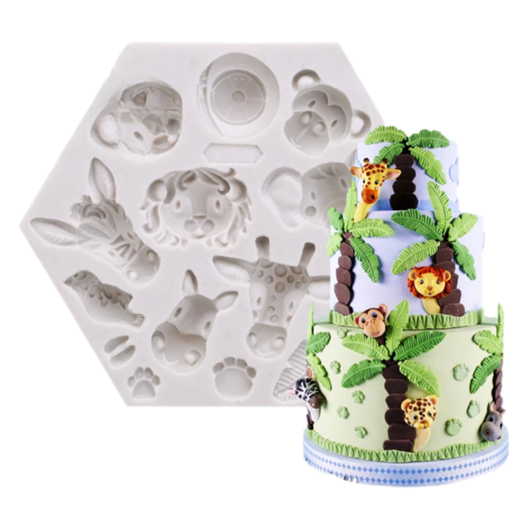 Dale vida a tus tortas con este encantador molde de silicona con figuras de león, jirafa, mono, cebra y más. Perfecto para fiestas infantiles, baby showers o temáticas safari.