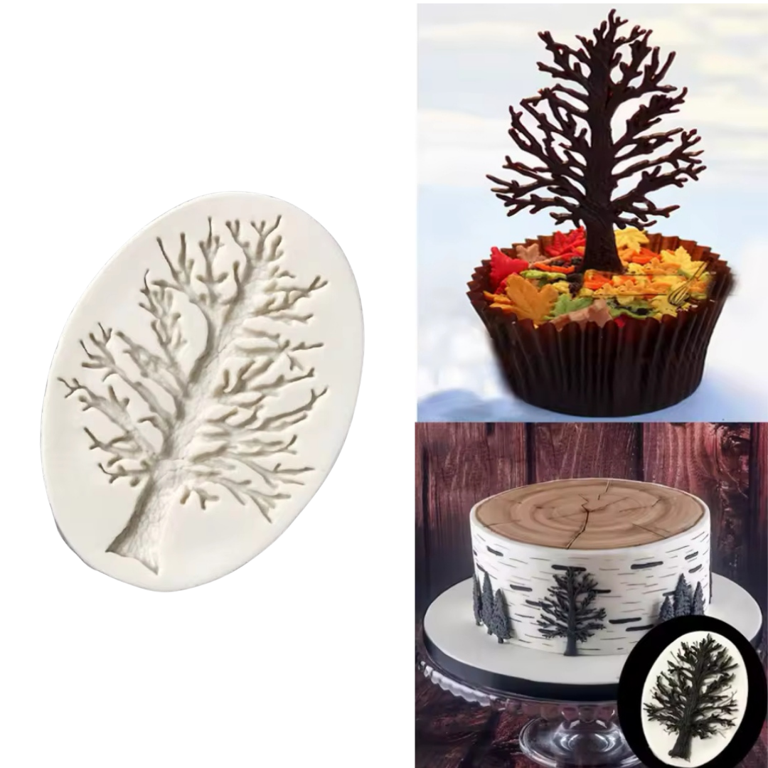 Lleva tus decoraciones al siguiente nivel con este molde de silicona con diseño de árbol desnudo. Ideal para cupcakes, tortas temáticas, proyectos en fondant, chocolate, resina o jabón artesanal.