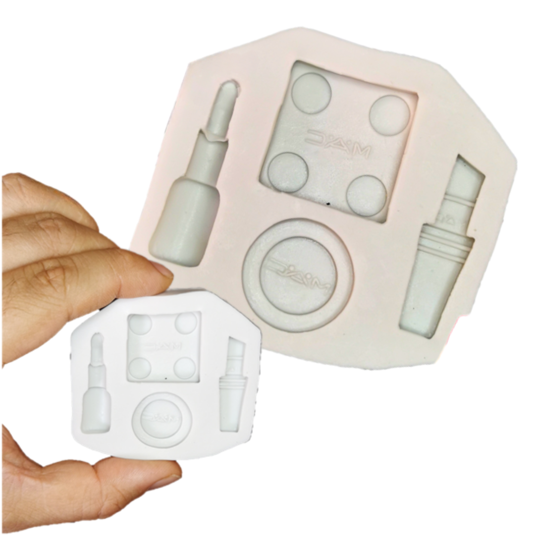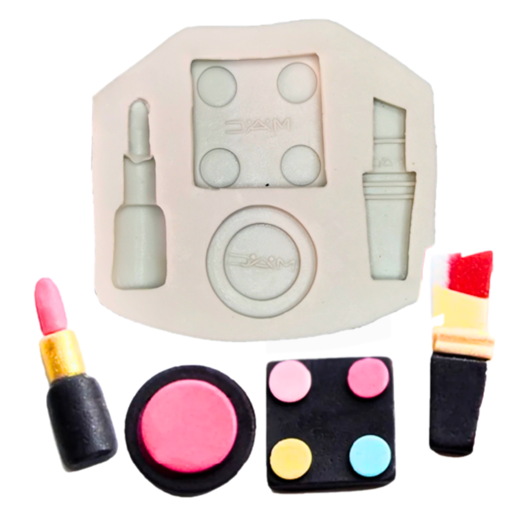 Transforma tu reposterÃa y proyectos creativos con este encantador molde de silicona, ideal para crear decoraciones de estilo cosmético como lápices labiales, polvo compacto y más. Perfecto para agregar detalles personalizados a pasteles, galletas, y otros proyectos de reposterÃa o manualidades.