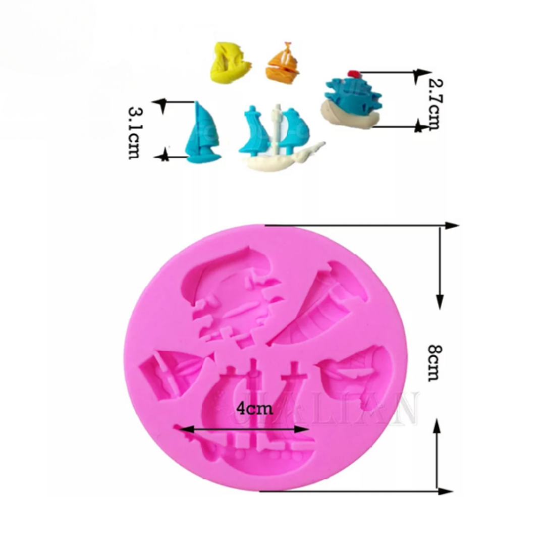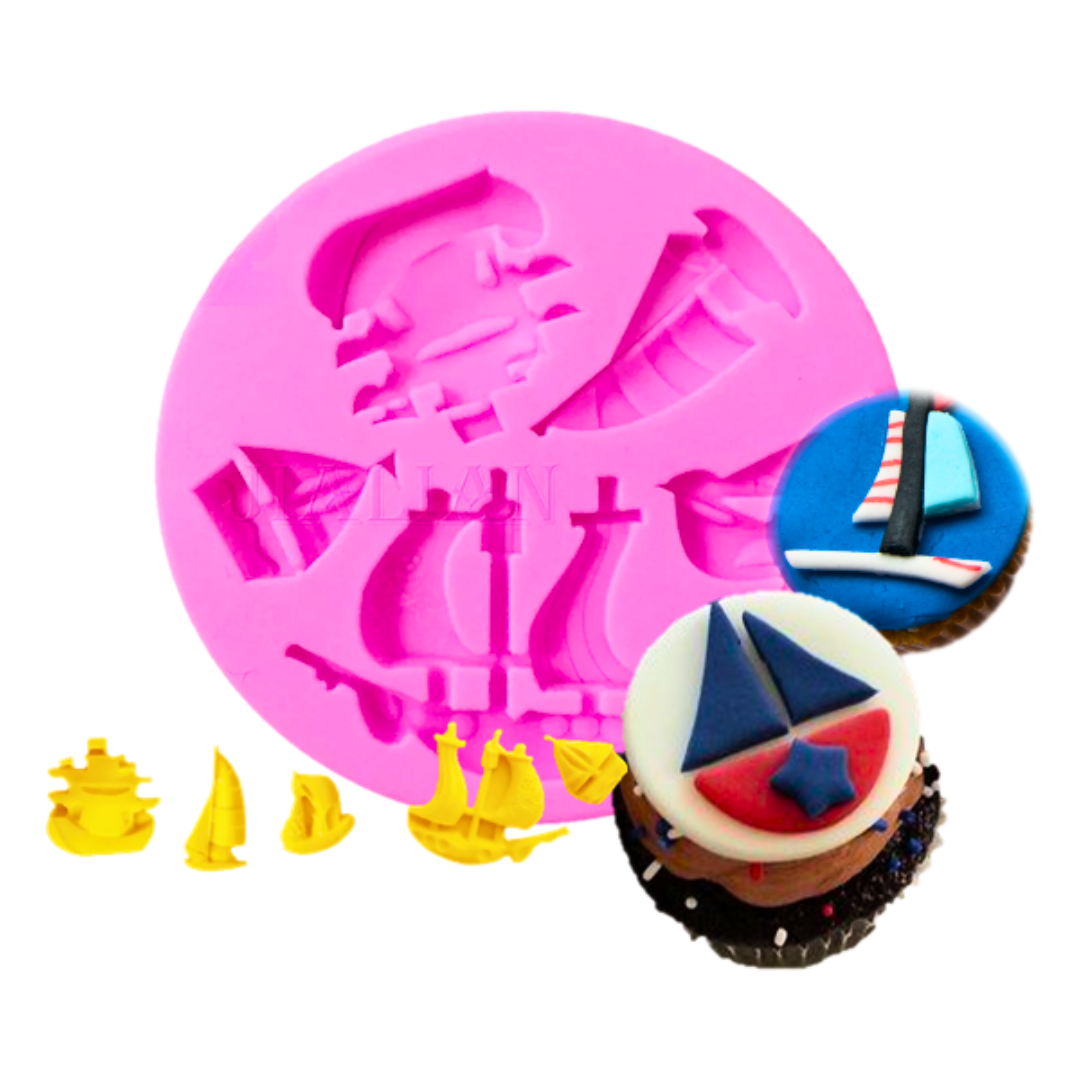 Molde con formas detalladas de barcos y veleros ideal para cupcakes, fondant, chocolates, jabones y manualidades. Perfecto para temáticas náuticas, fiestas infantiles o eventos veraniegos.
