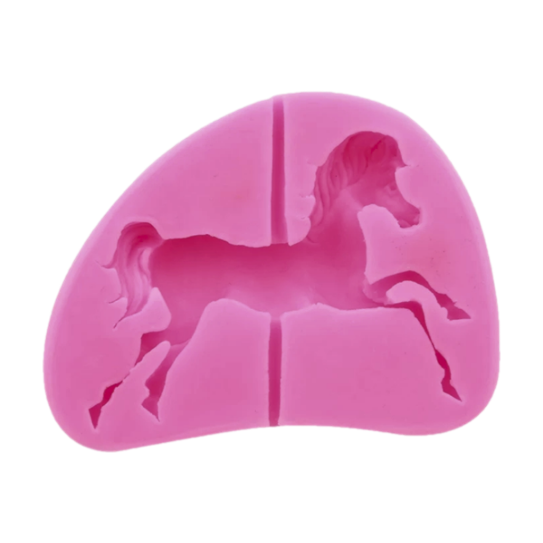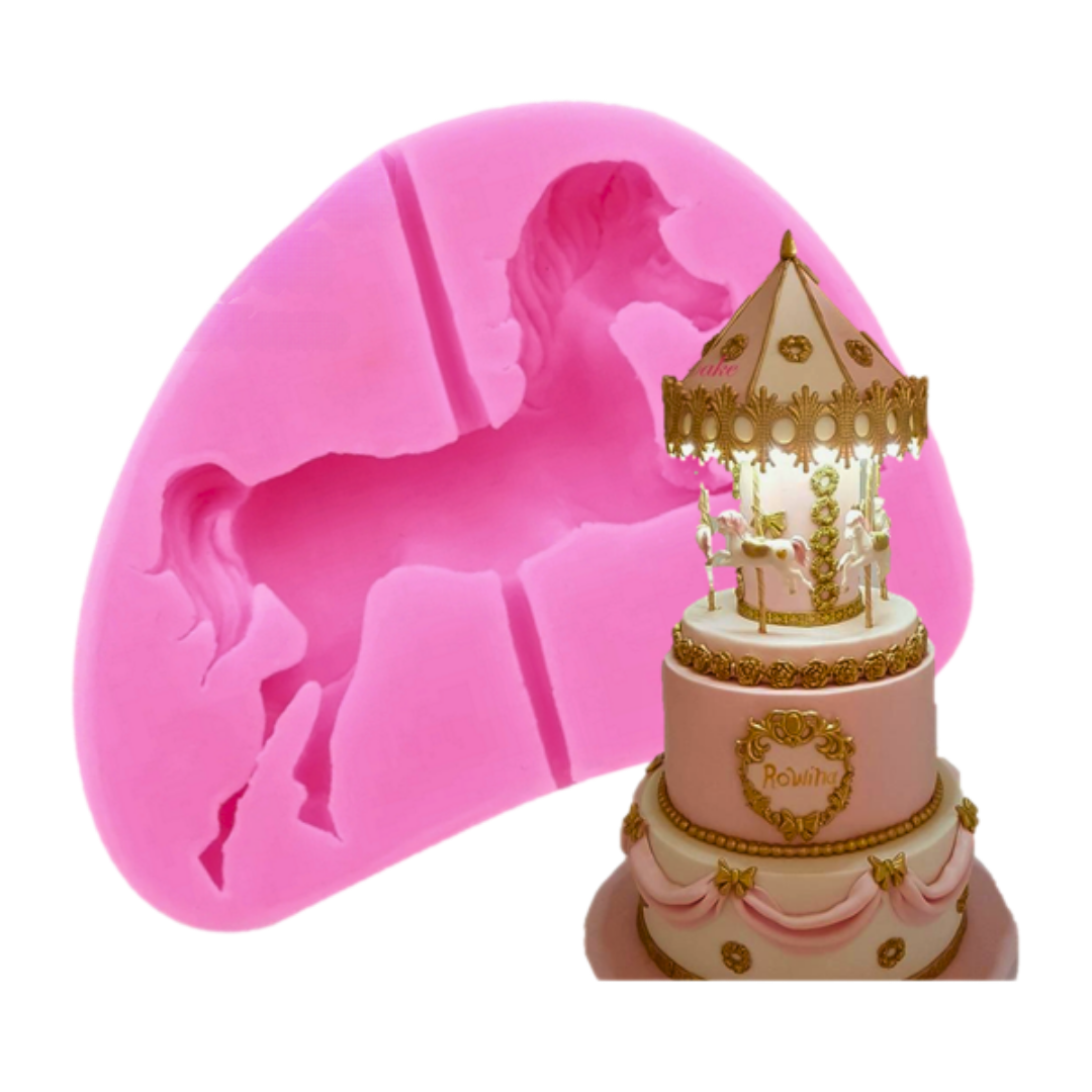 Crea decoraciones de ensueño con este molde de caballito estilo carrusel. Ideal para tortas temáticas, cumpleaños infantiles, bautizos o celebraciones especiales con un toque vintage y elegante.