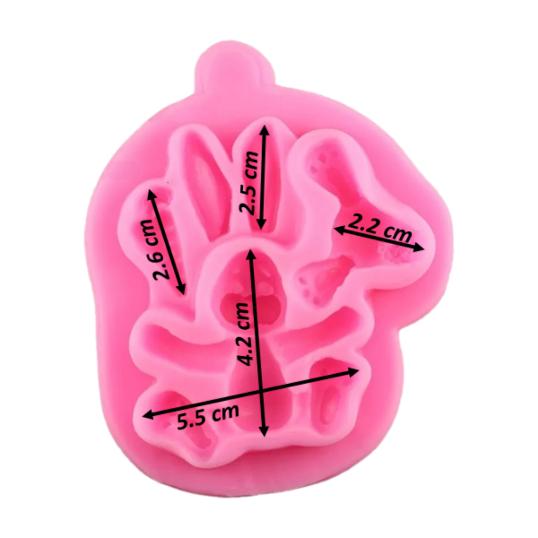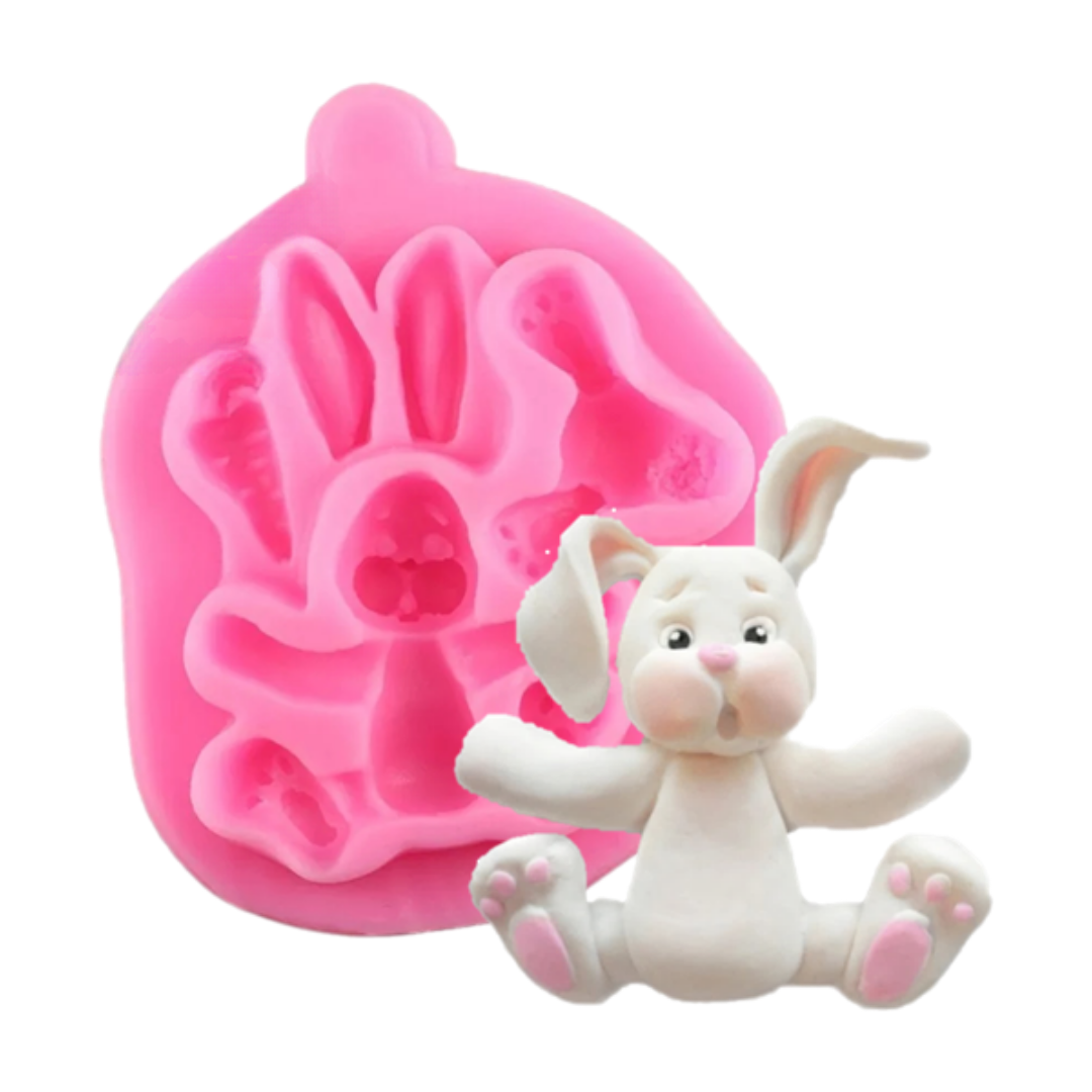 Moldea un tierno conejito en 3D con detalles adorables que aportan un toque mĂĄgico a pasteles, cupcakes, galletas o figuras de masa flexible, fondant o chocolate.