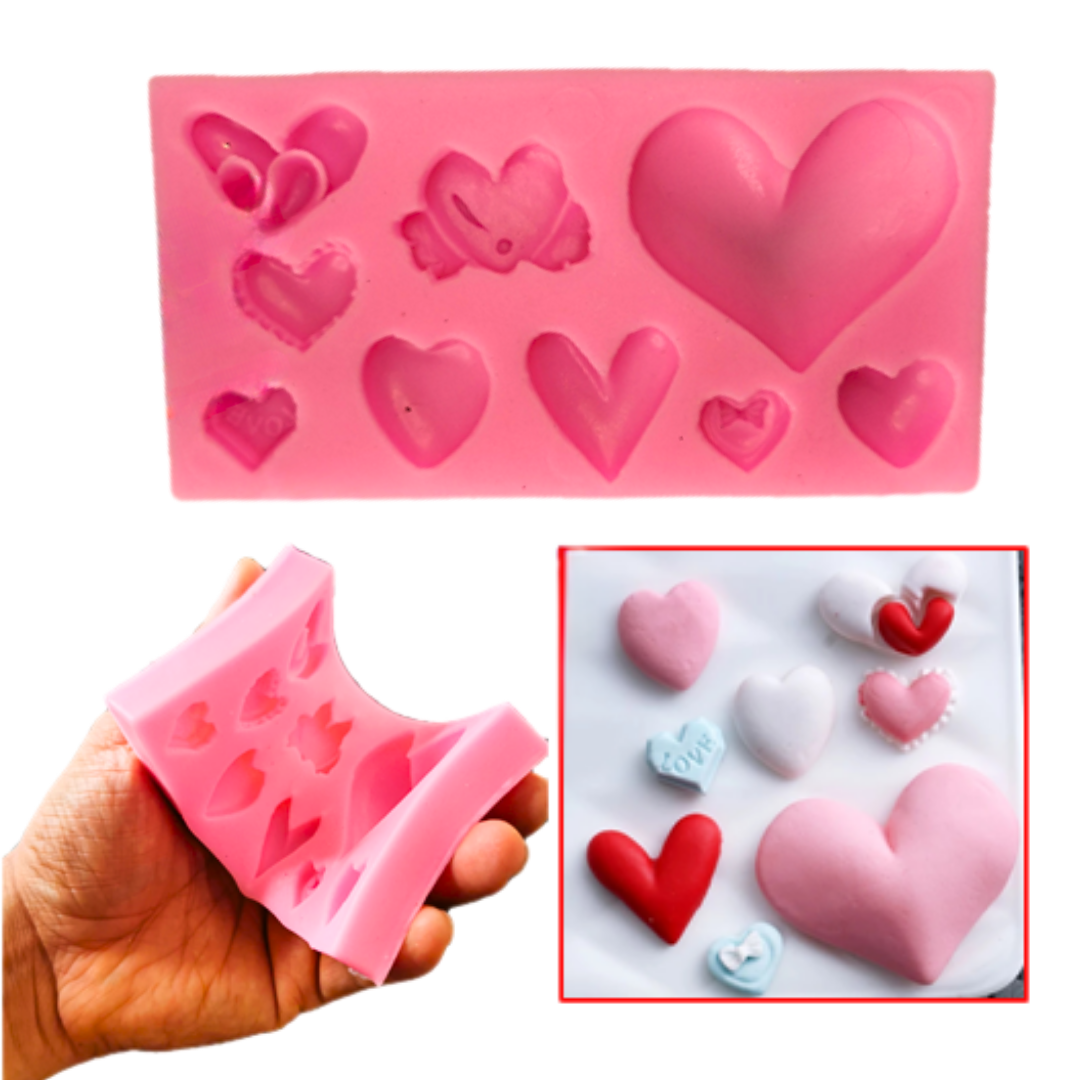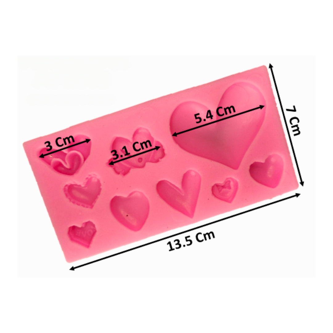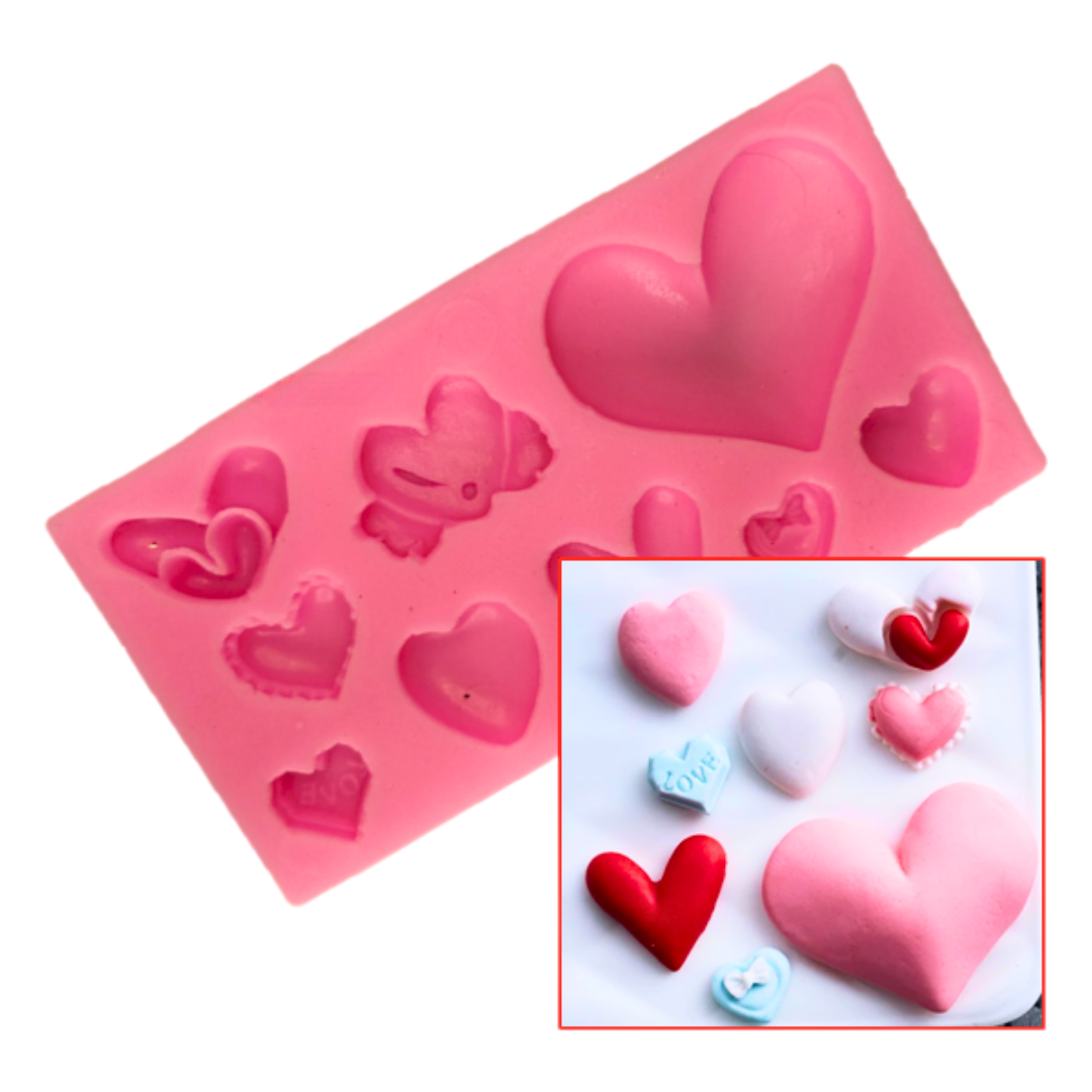Crea decoraciones dulces y románticas con este versátil molde de corazones en diferentes tamaños y diseños. Ideal para repostería creativa, chocolates, bombones, fondant y mucho más.