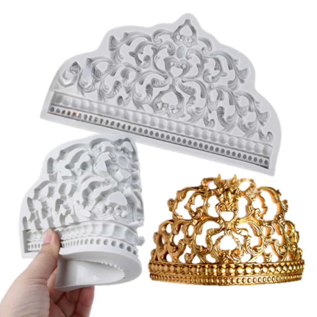 Convierte tus tortas en verdaderas obras de arte con este molde de corona estilo barroco. Perfecto para pasteles de bodas, quinceañeras, baby showers o cumpleaños temáticos de realeza.