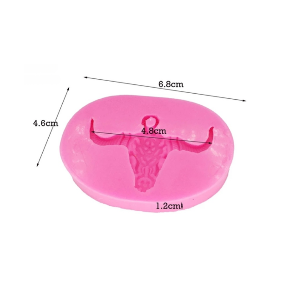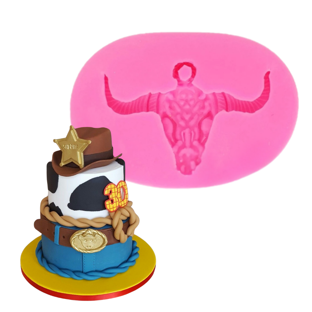 Lleva el estilo del viejo oeste a tus creaciones con este molde de silicona con diseño de cráneo de toro. Ideal para tortas temáticas vaqueras, cumpleaños country, decoración de pasteles de rodeo o proyectos artesanales