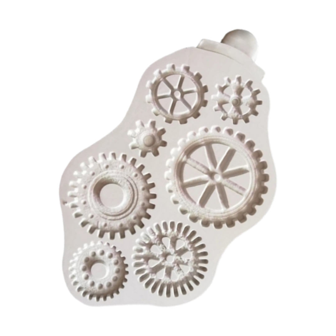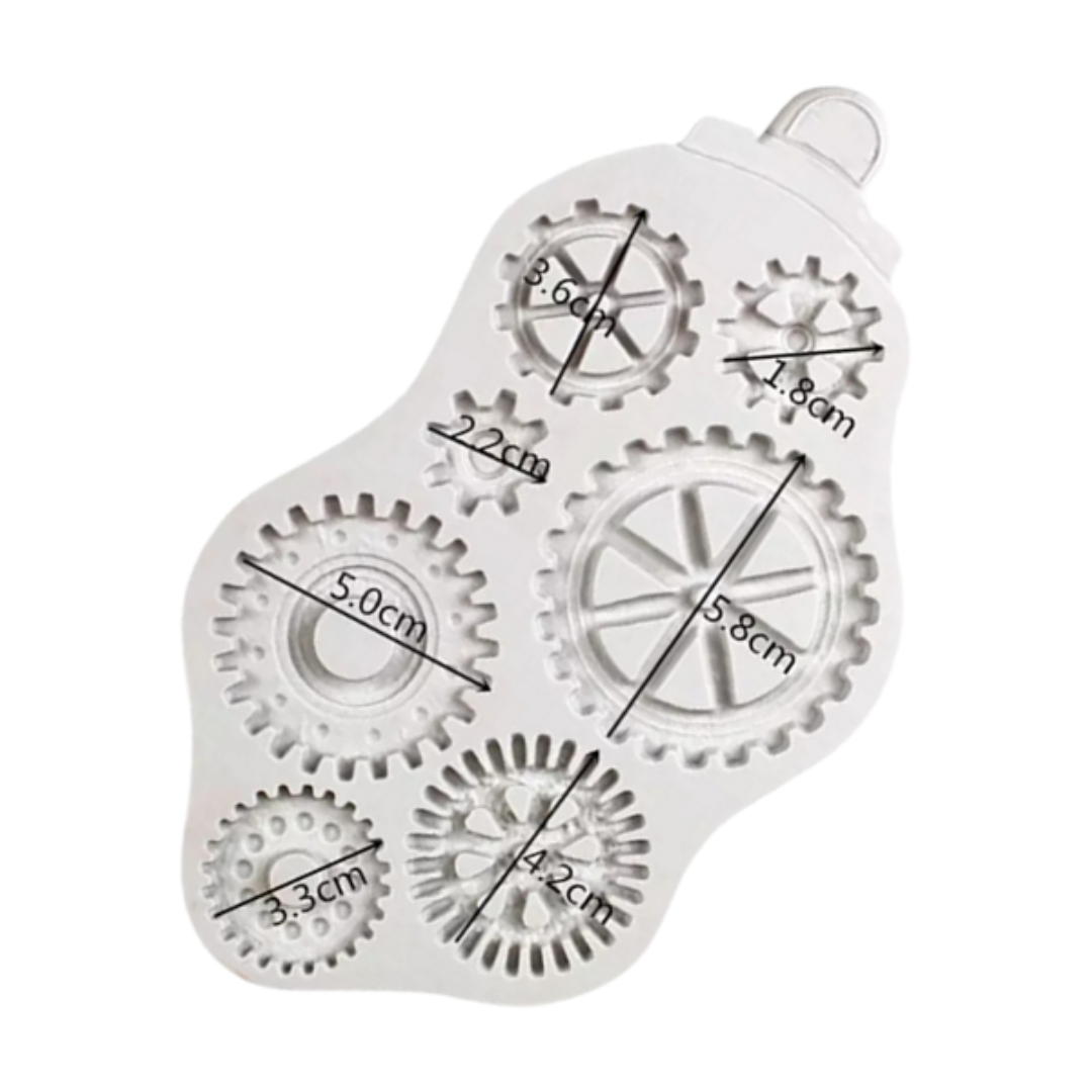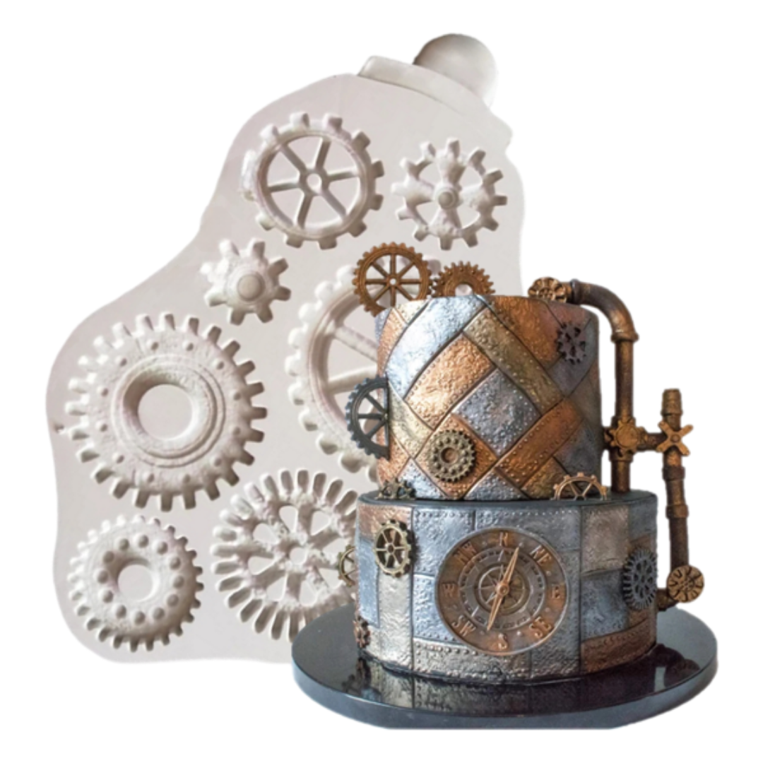 Este molde de silicona con forma de engranajes es perfecto para pasteles temáticos, decoración de cupcakes, chocolates, manualidades en resina y más. Su estilo steampunk aporta un toque industrial y original a tus proyectos.
