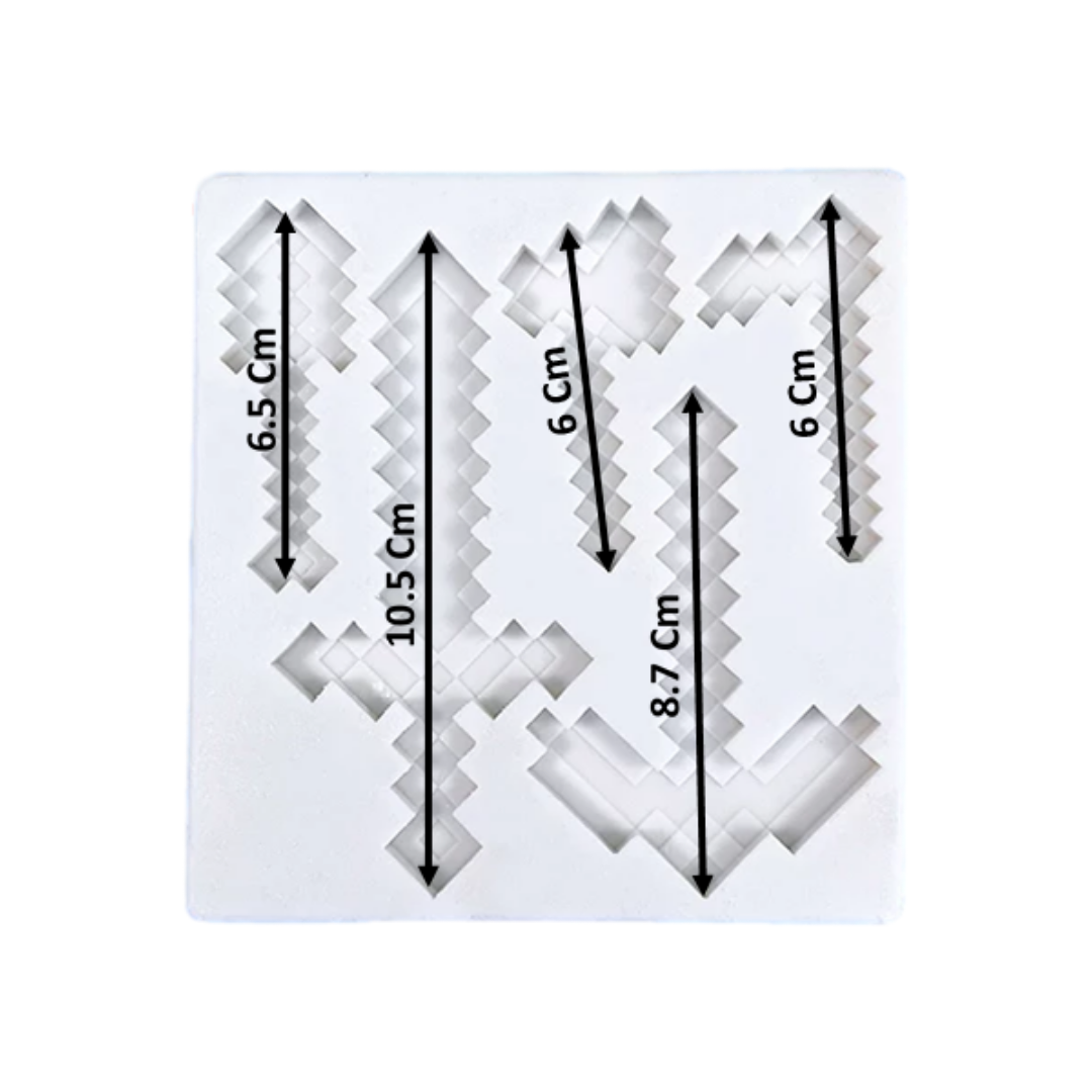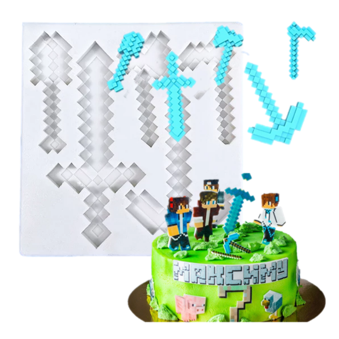 Crea espadas, picos, palas y hachas inspiradas en el mundo pixelado de los videojuegos favoritos de los niños. Perfecto para decorar pasteles, cupcakes y dulces de cumpleaños inolvidables.