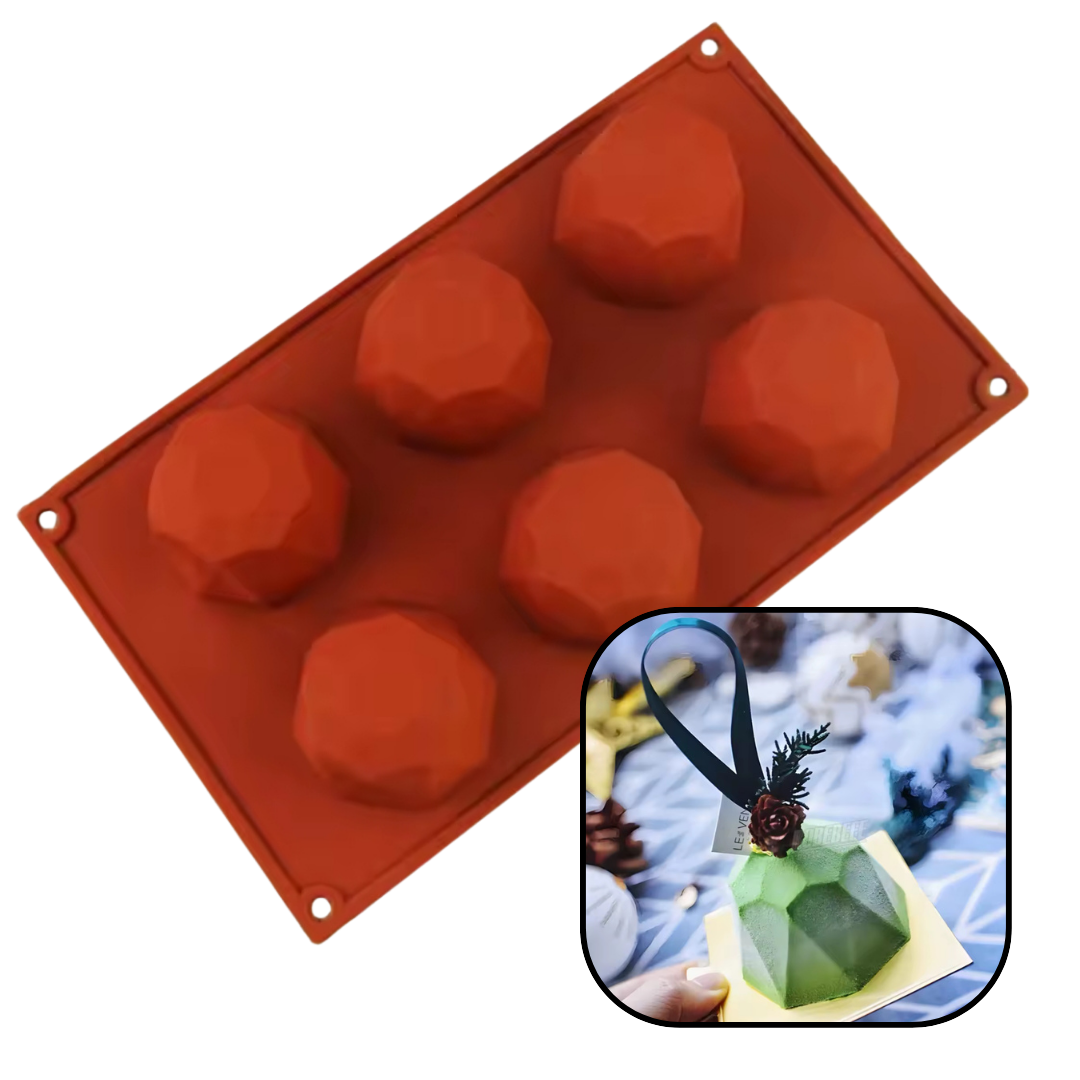 Dale un acabado sofisticado y moderno a tus creaciones con este molde de silicona con diseño tipo diamante. Ideal para chocolates, gelatinas, jabones, velas y más.