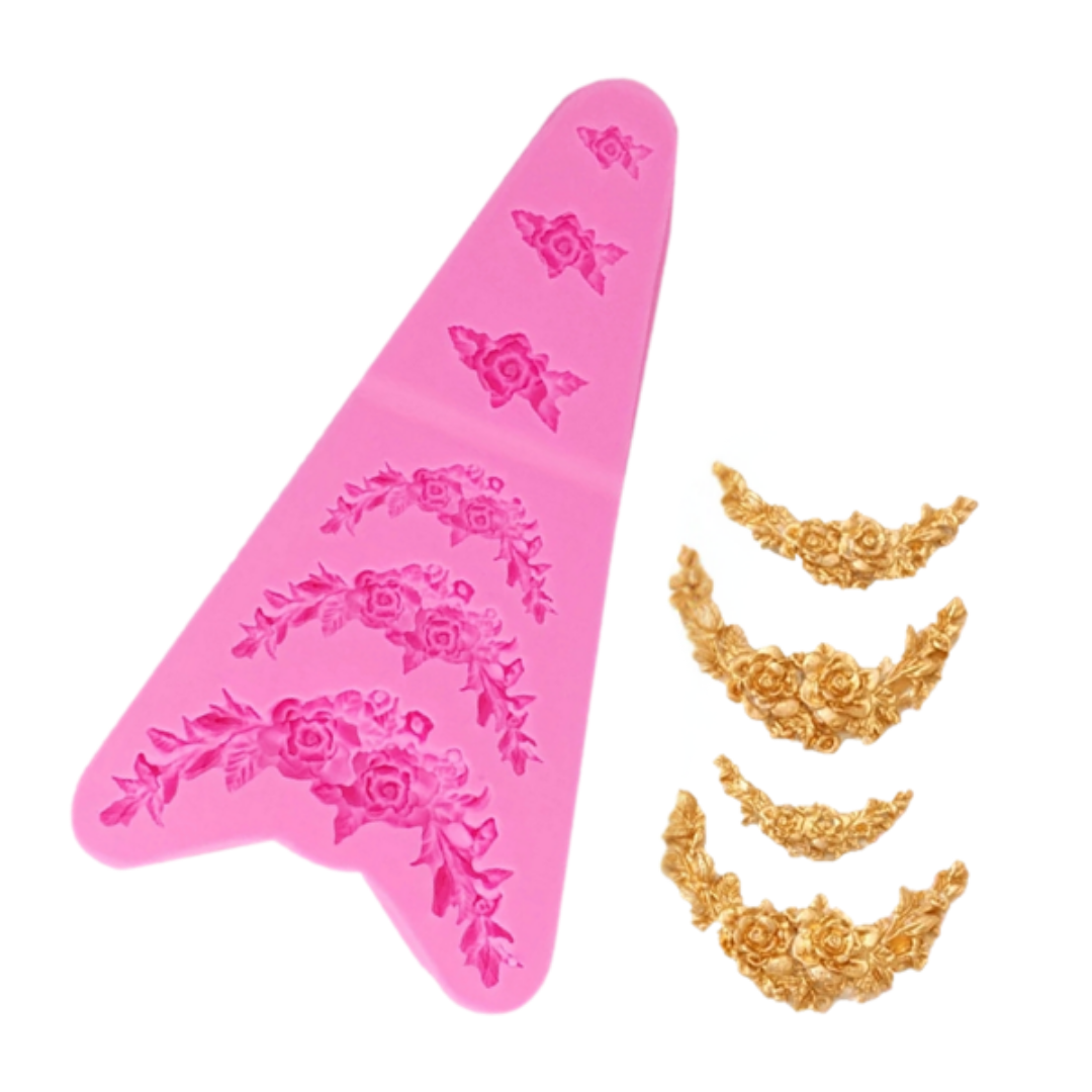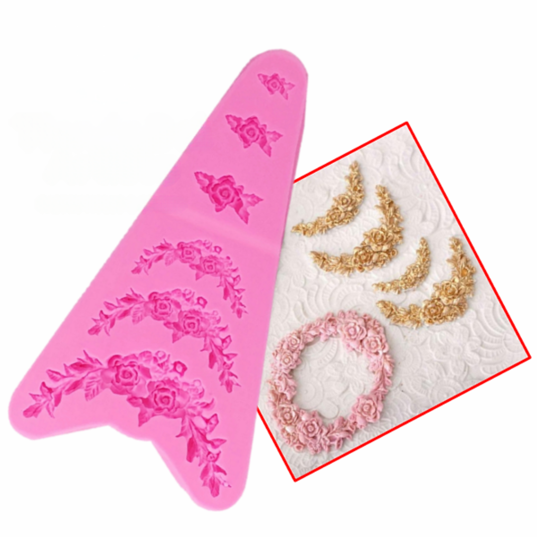 Embellece tus postres y creaciones artesanales con este delicado molde de silicona con diseños de guirnaldas florales. Ideal para tortas románticas, reposterÃa temática, decoración de jabones y proyectos creativos en resina o porcelana frÃa.
