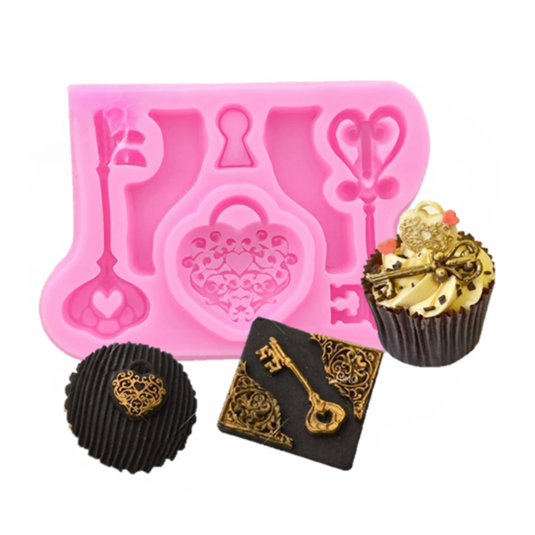 Decora cupcakes, galletas, chocolates o pasteles con un toque romántico y sofisticado gracias a este molde con formas de llaves antiguas, candados y cerraduras. Ideal para bodas, San Valentín, aniversarios o temáticas vintage.