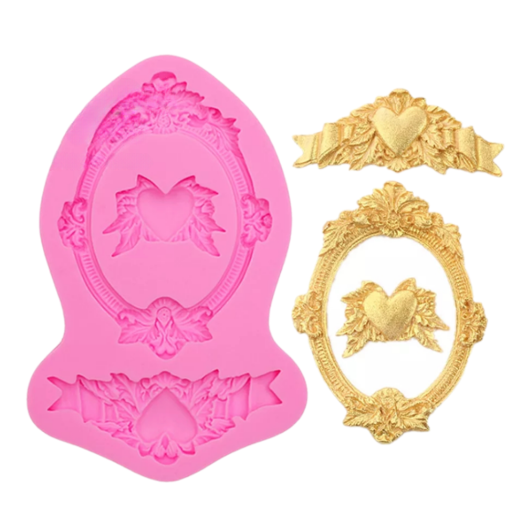Transforma tus creaciones con un toque de elegancia barroca. Este molde con diseño de marco y corazón es ideal para repostería artística, jabonería, y manualidades de lujo.