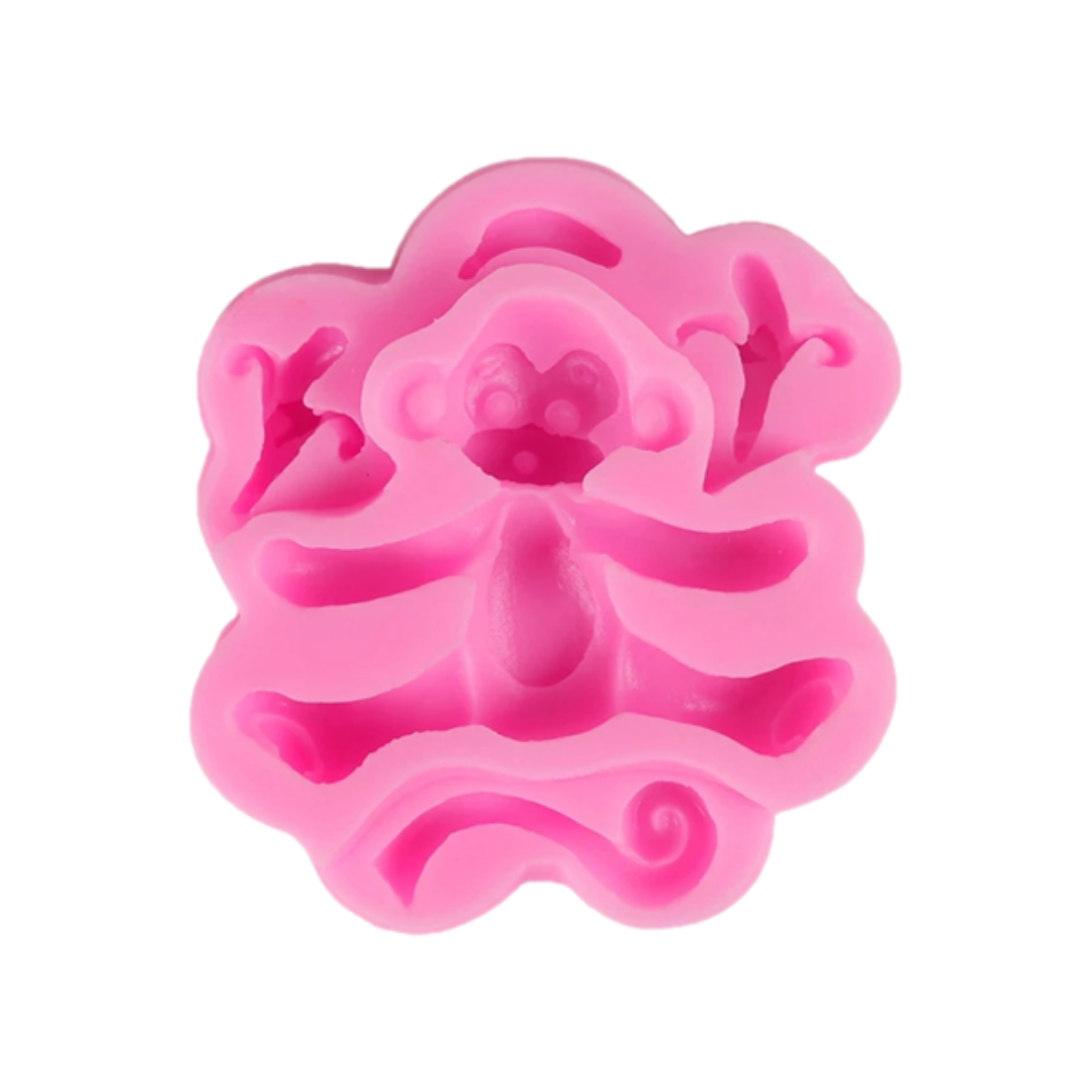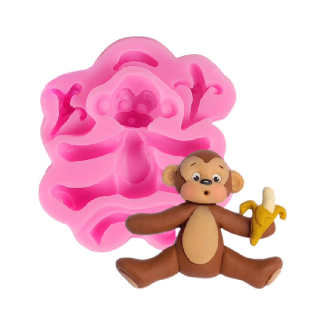 Crea adorables monitos en 3D con expresión tierna y un banano incluido, perfectos para decorar cupcakes, tortas, galletas o modelar en masa flexible, fondant y chocolate.