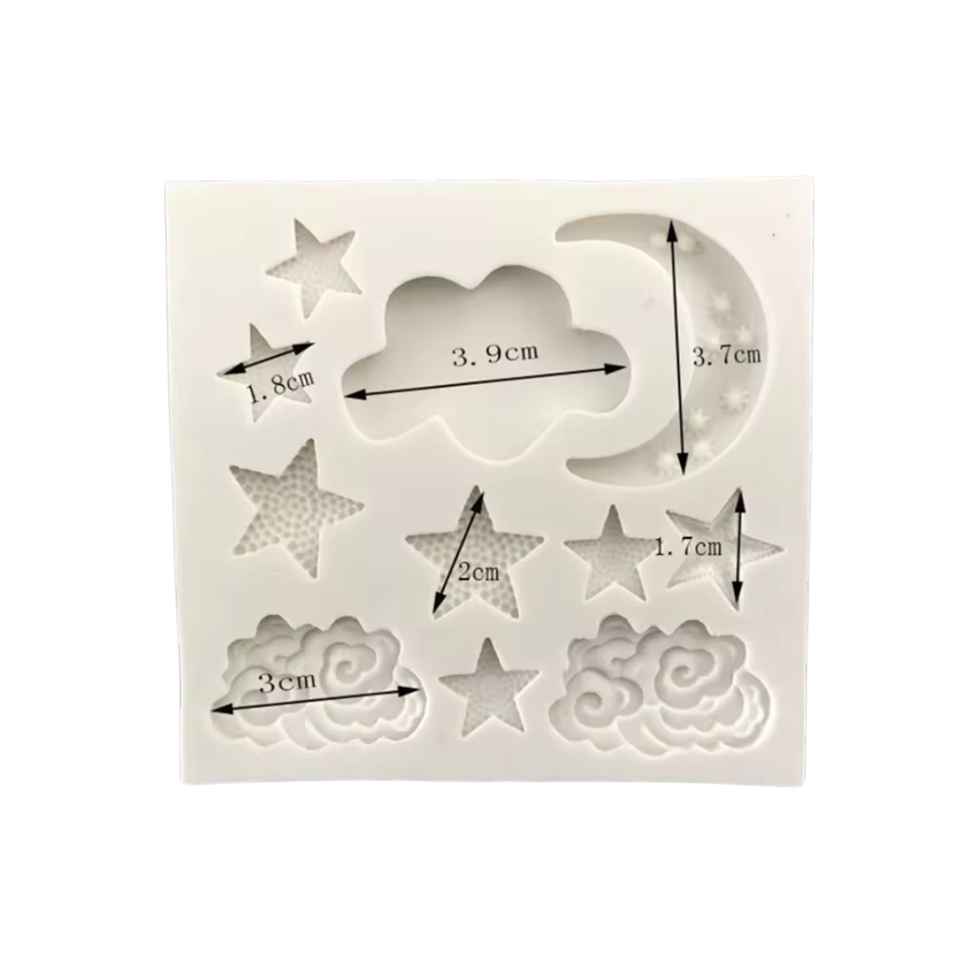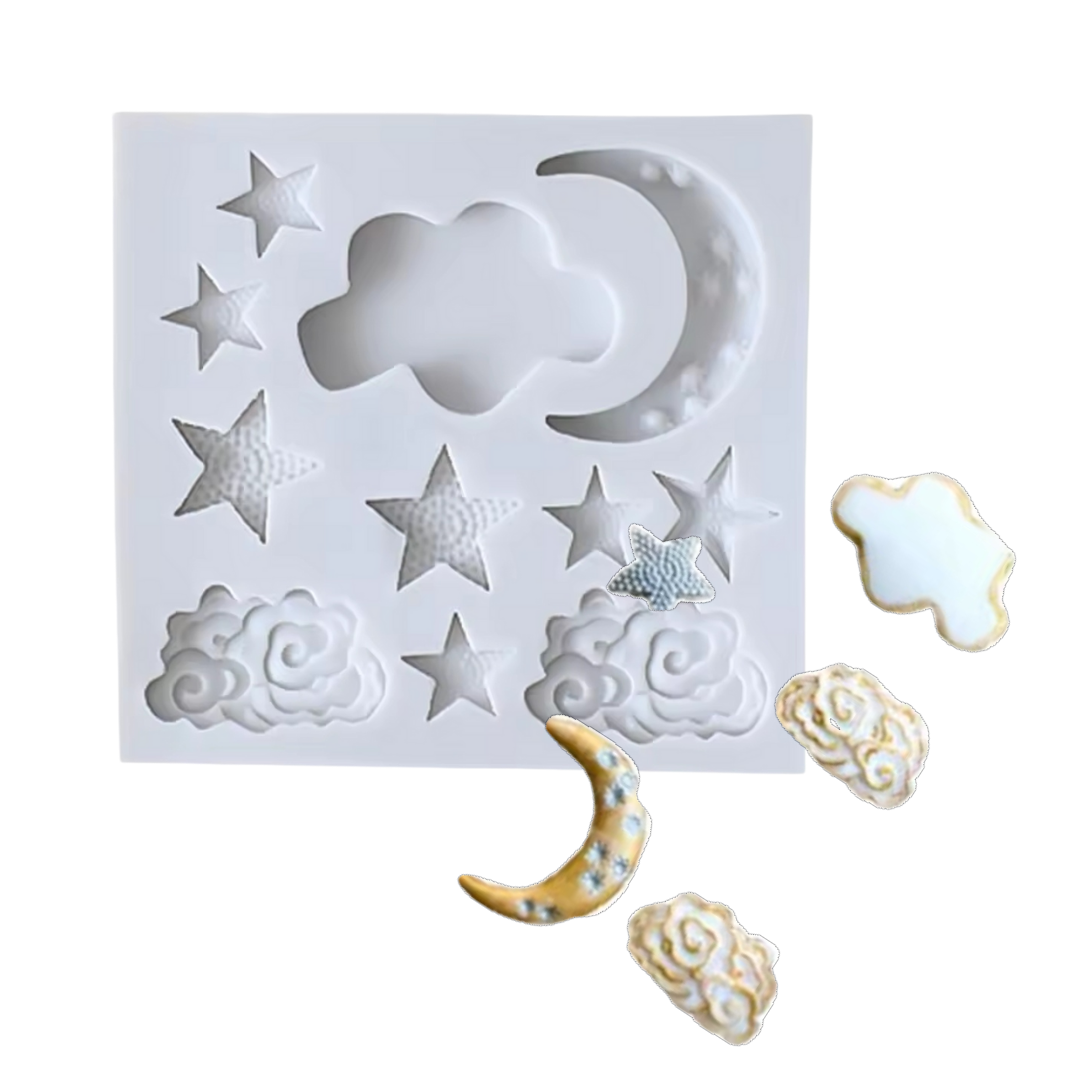 Este molde incluye figuras detalladas de luna, nubes y estrellas, perfectas para decorar pasteles, cupcakes, chocolates o proyectos de resina. Ideal para baby showers, cumpleaños temáticos o reposterÃa creativa.