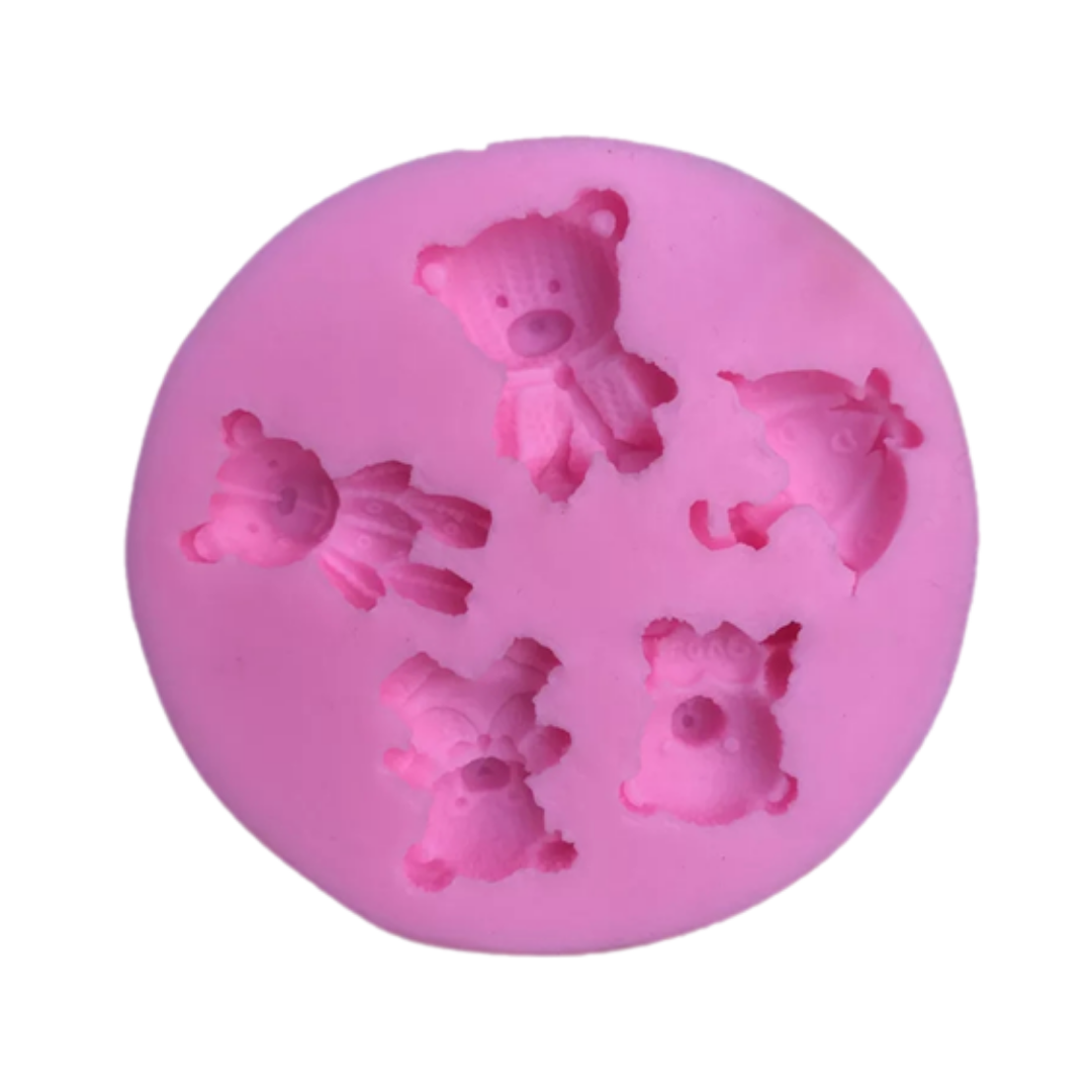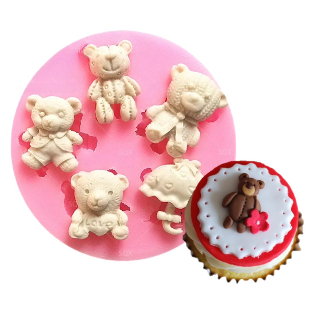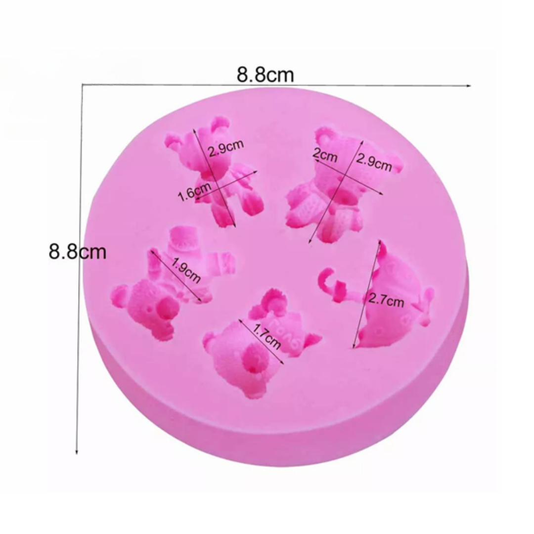 Este adorable molde con figuras de ositos es perfecto para decorar pasteles, cupcakes, jabones artesanales y más. Ideal para celebraciones infantiles, baby showers o detalles románticos.