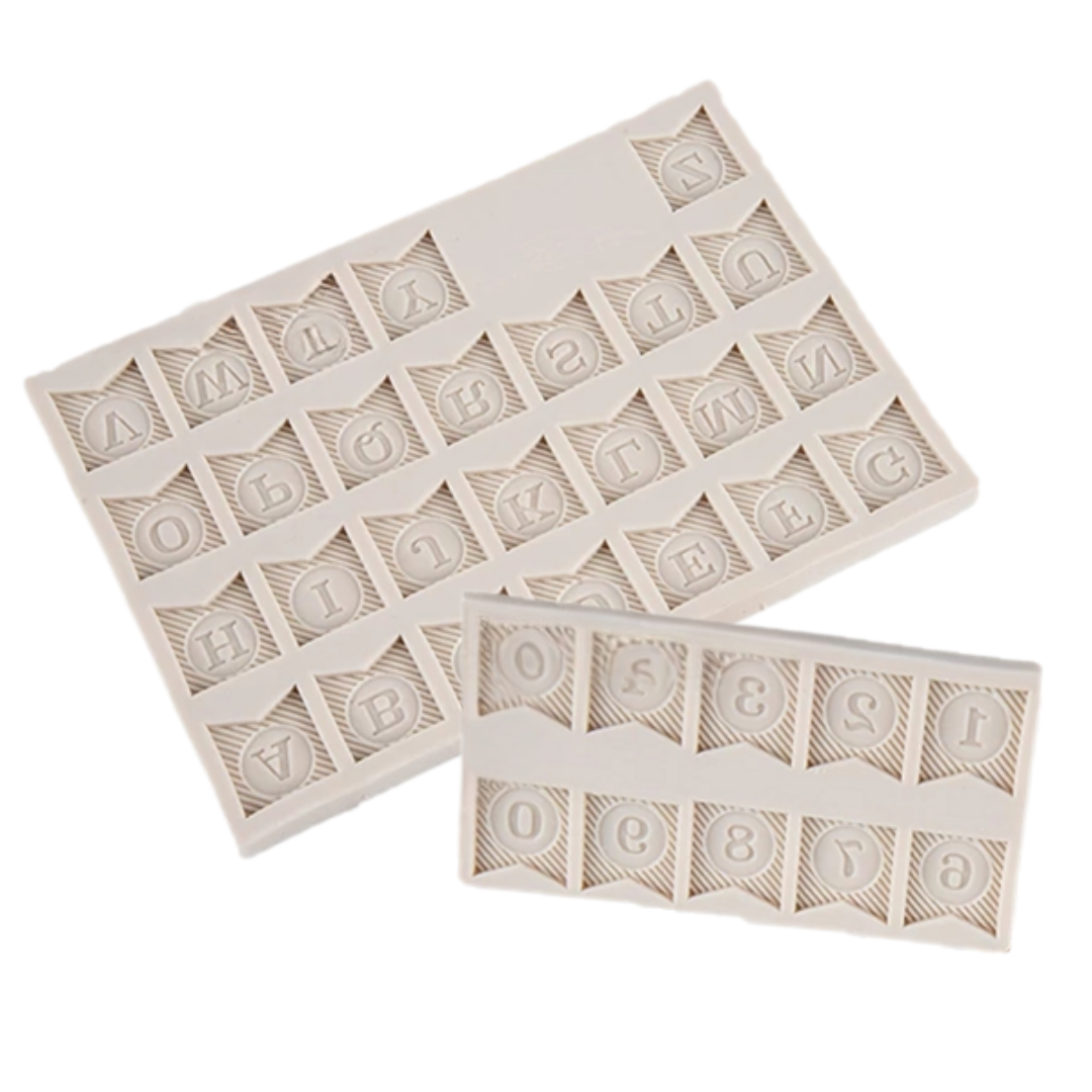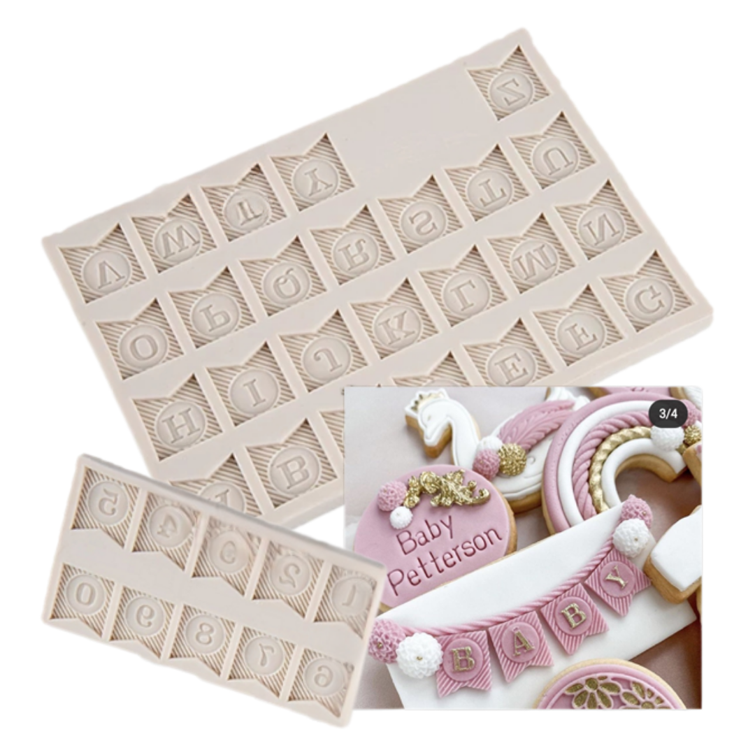 Transforma tus postres en obras de arte con este molde de silicona con letras y números en formato de banderines. Ideal para decorar galletas, cupcakes, pasteles y más, permite crear mensajes personalizados con un acabado elegante y profesional.