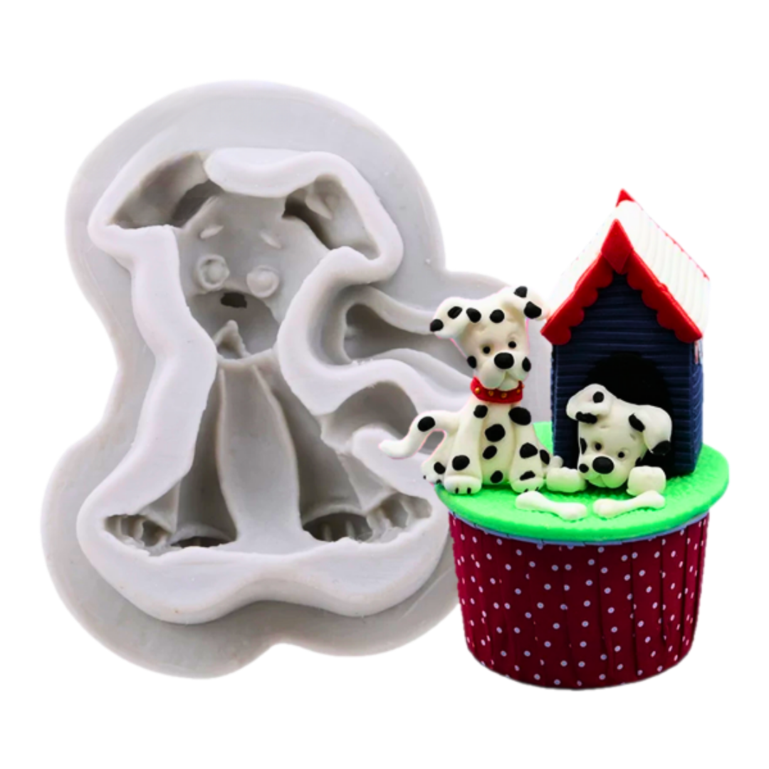 Agrega ternura y diversión a tus cupcakes, galletas o pasteles con este encantador molde de perrito dálmata. Perfecto para celebraciones infantiles, fiestas temáticas o regalos personalizados.
