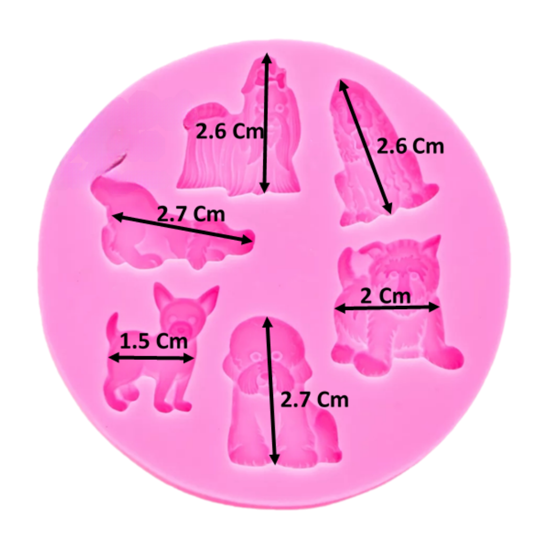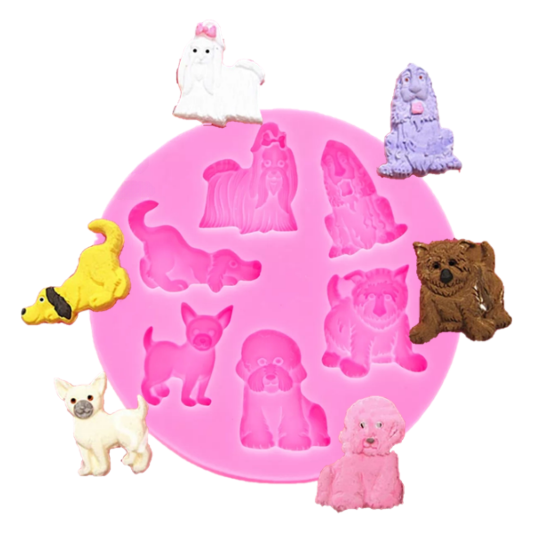 Este molde redondo incluye múltiples razas de perros, ideal para decorar cupcakes, pasteles, jabones o manualidades con detalles tiernos y definidos. ¡Perfecto para amantes de las mascotas y reposteros creativos!