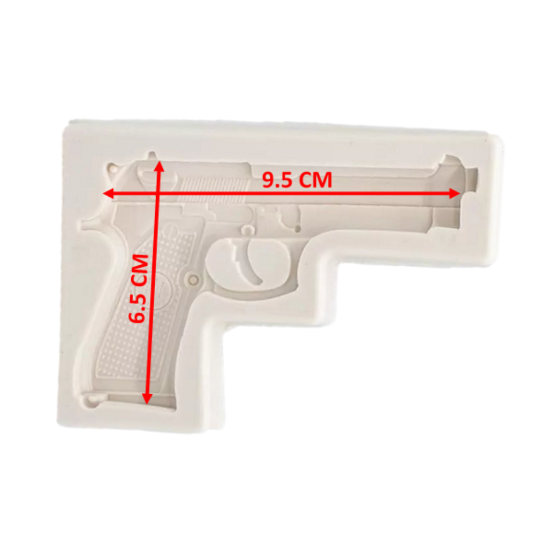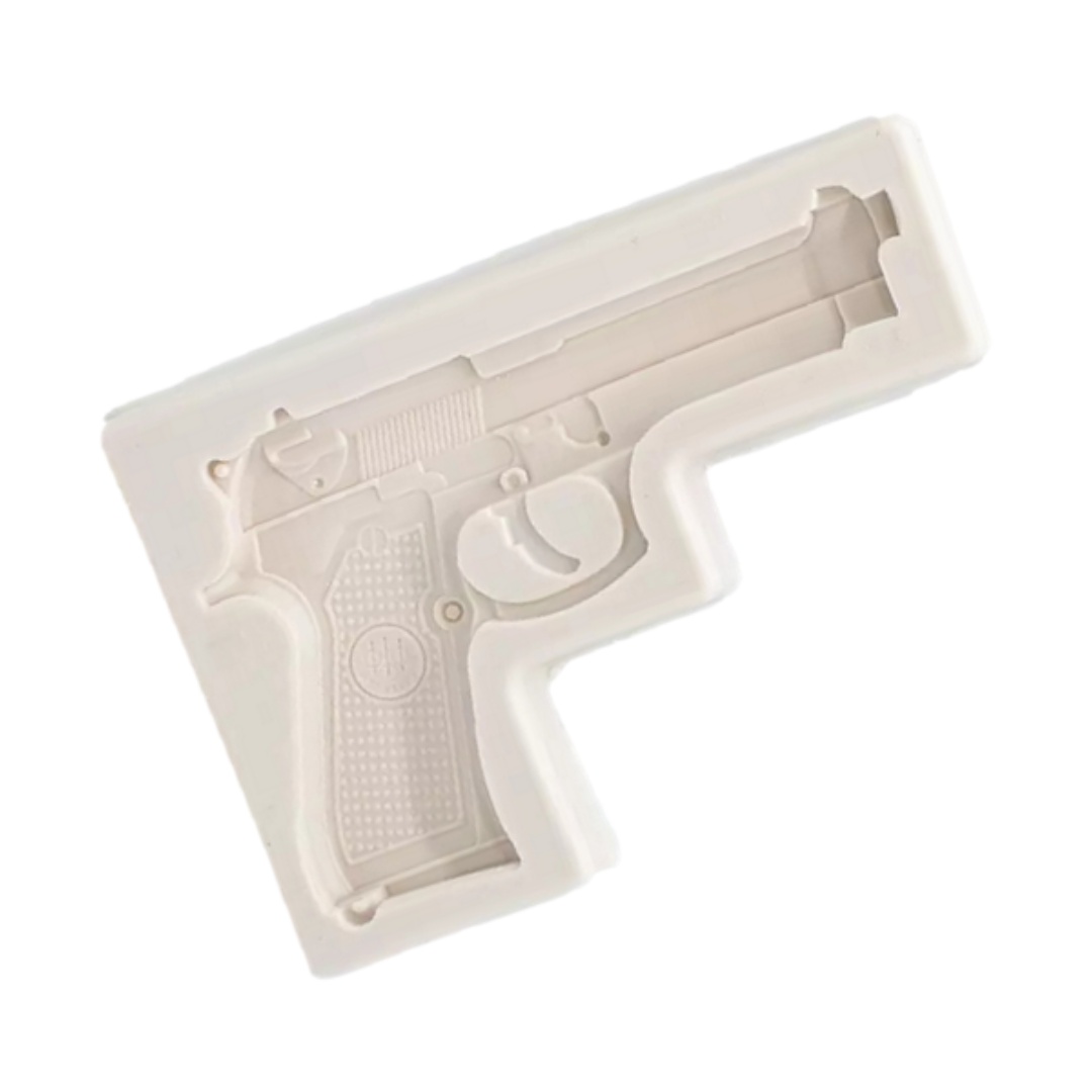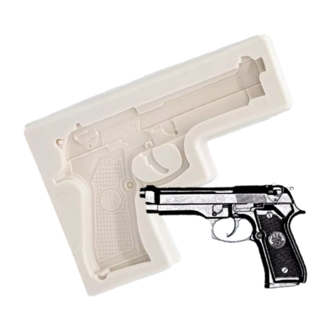 Este molde con diseño de pistola tipo Beretta es ideal para reposterÃa temática, eventos personalizados, decoraciones de pasteles y cupcakes. Crea figuras impactantes en fondant, chocolate o resina con un alto nivel de detalle.