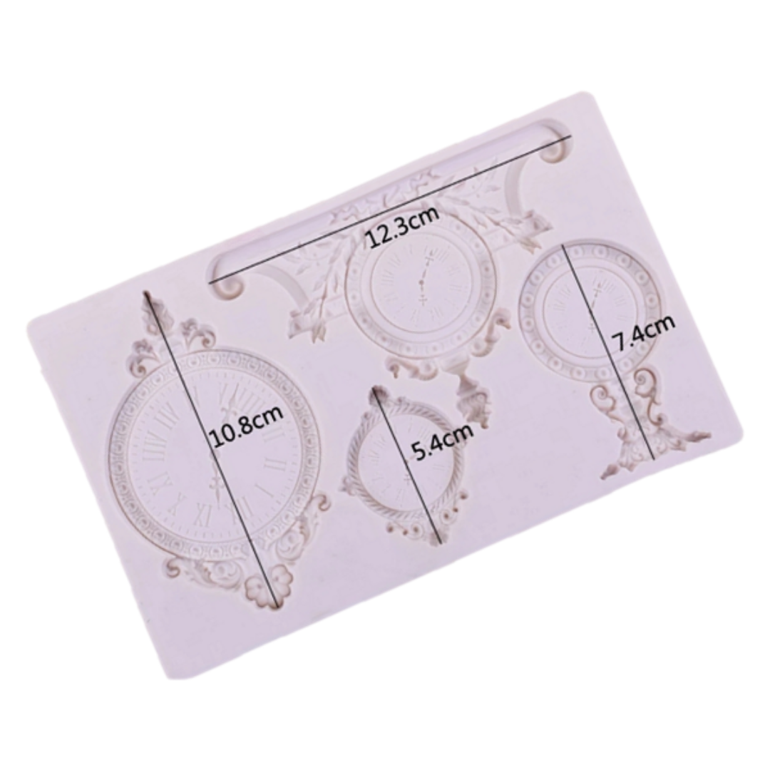 Añade un toque de elegancia y sofisticación a tus proyectos con este molde de silicona con diseños de relojes decorativos. Perfecto para repostería, proyectos de resina, jabones artesanales y decoraciones personalizadas para celebraciones especiales.