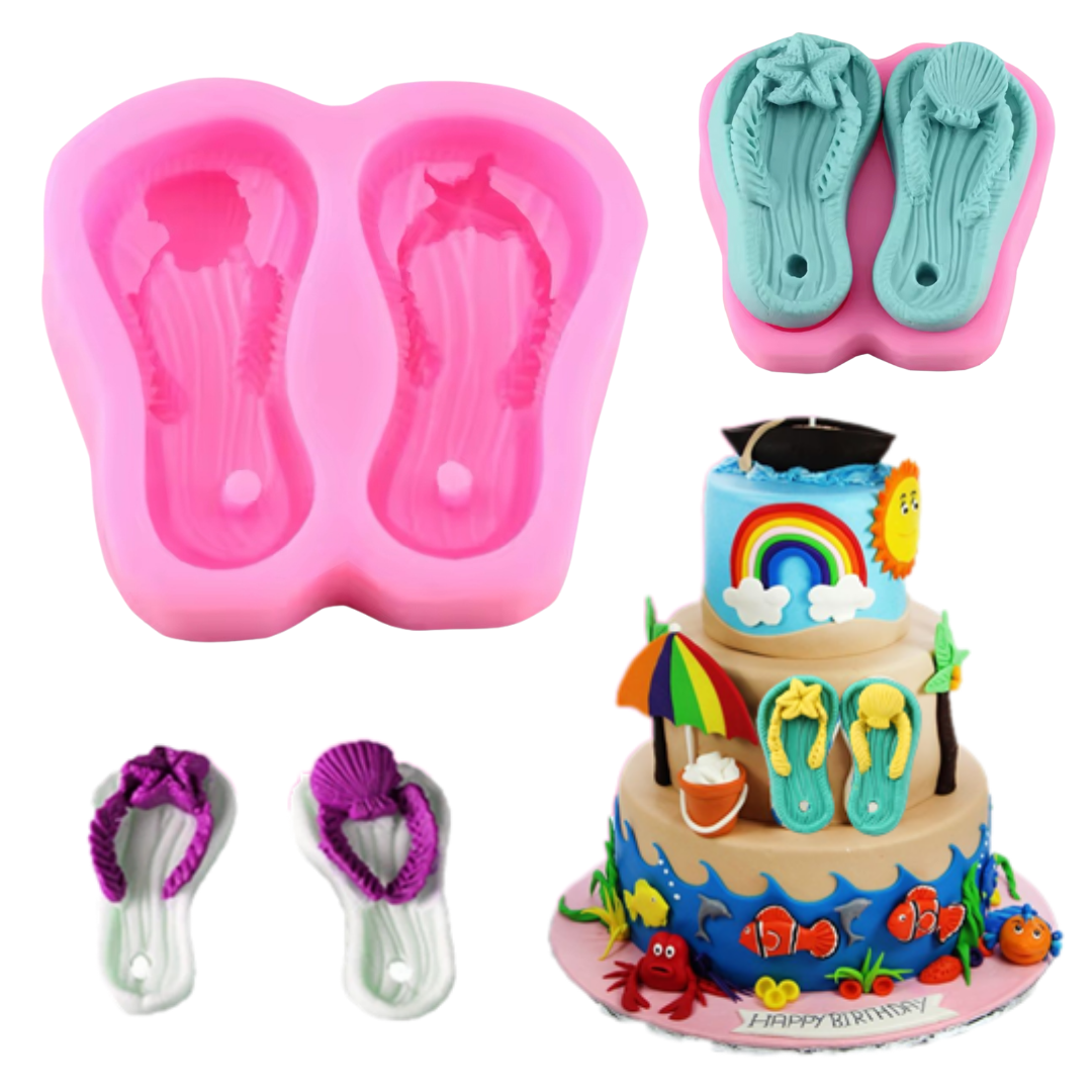 Crea adorables sandalias de playa en 3D con detalles realistas. Perfectas para decorar pasteles temáticos de verano, cupcakes, galletas o figuras en fondant y pasta flexible.