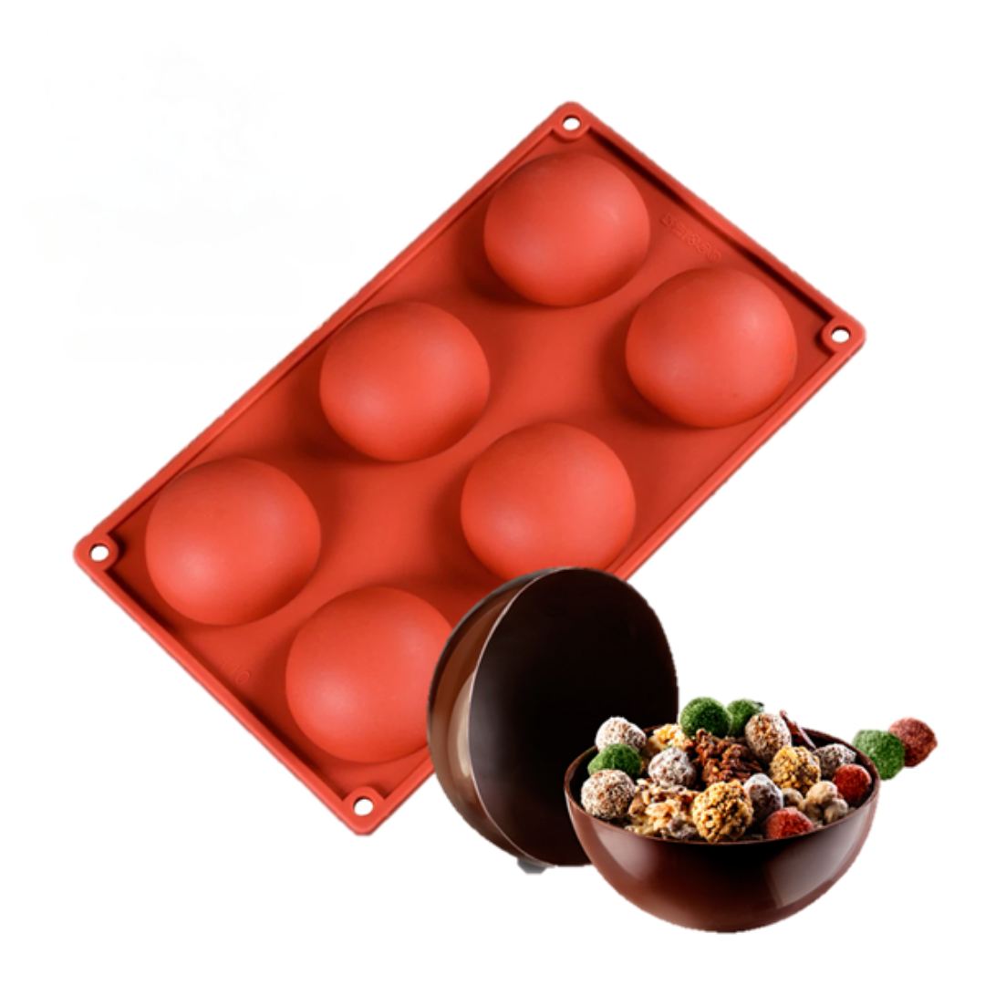 El molde de silicona semiesférico es el aliado perfecto para reposteros, chocolateros y creativos culinarios. Ideal para hacer bombones, esferas de chocolate, postres fríos y decoraciones espectaculares con un acabado profesional.