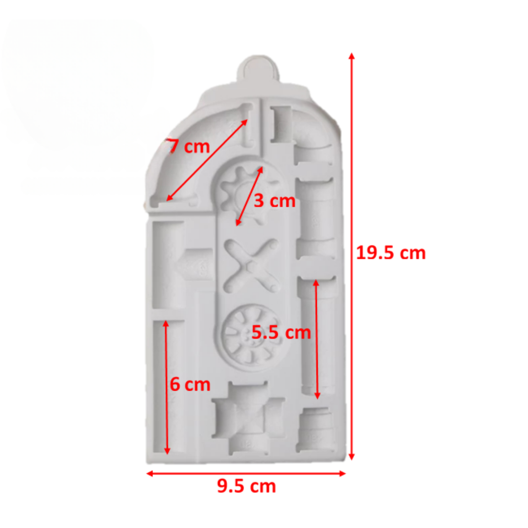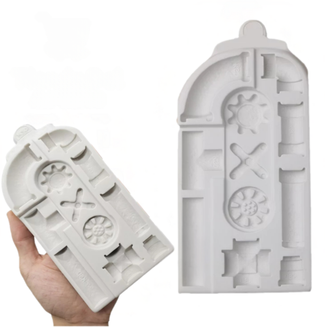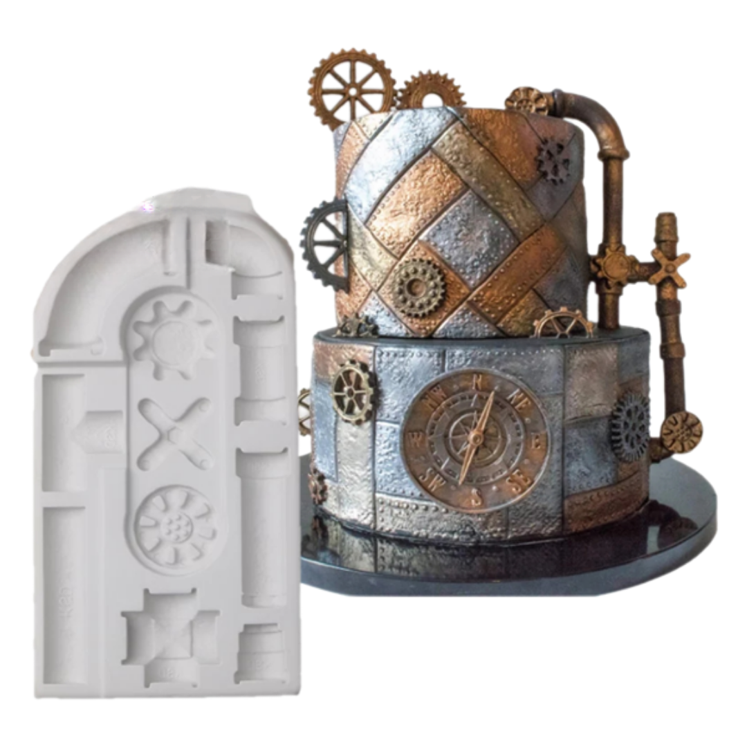 Este molde es perfecto para crear engranajes, válvulas y detalles mecánicos con un realismo impresionante. Ideal para tortas temáticas de steampunk, ciencia ficción o industriales.