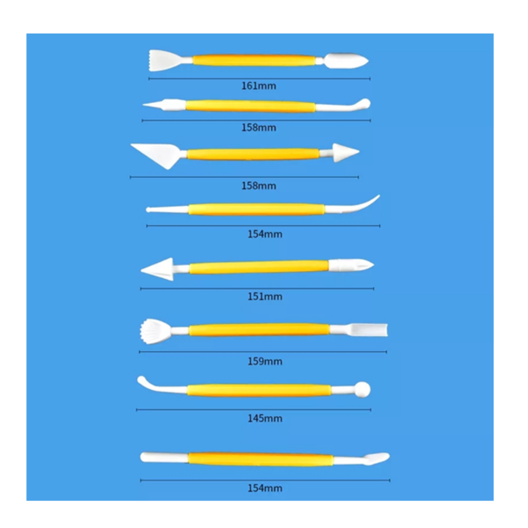 Domina el arte de la repostería creativa con este set de herramientas de modelado. Ideal para trabajar con fondant, pasta de goma, mazapán, arcilla o cualquier material maleable, este kit es esencial para lograr detalles precisos y acabados profesionales en tus creaciones.